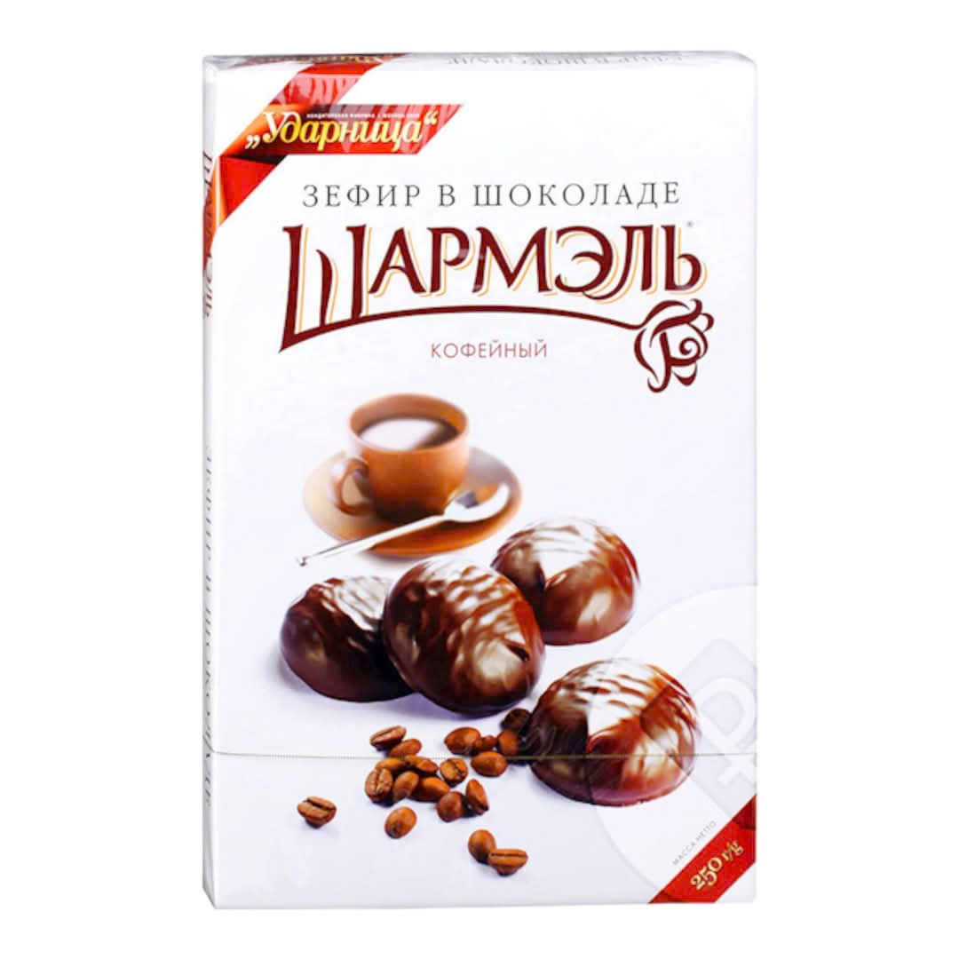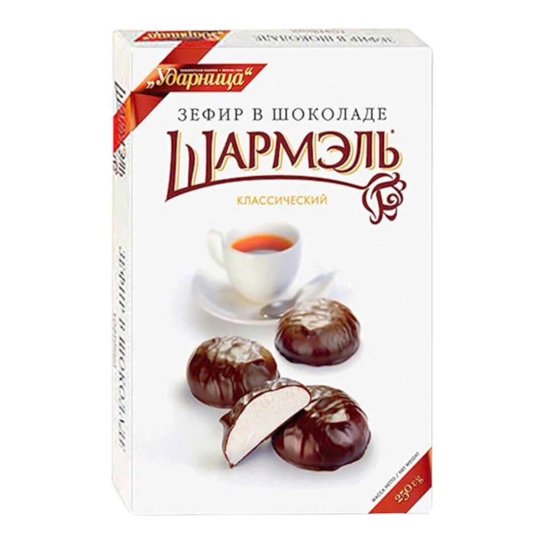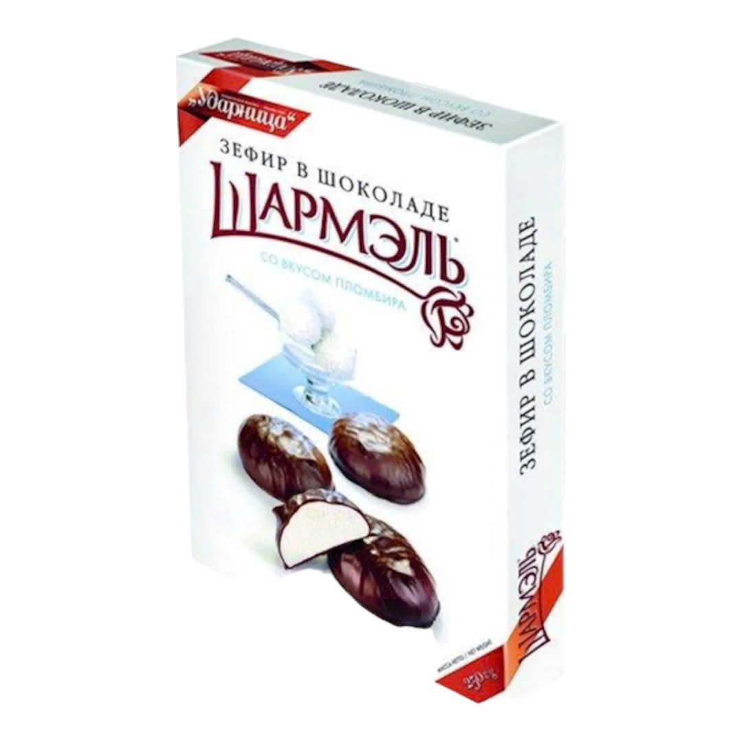 Kẹo Zefir phủ sô cô la Sharmel là một món ngọt truyền thống nổi tiếng của Nga, được sản xuất bởi thương hiệu Udarnitsa. Với lớp vỏ sô cô la thơm ngon bao bọc lớp nhân zefir mềm mịn, tan ngay trong miệng, đây là lựa chọn hoàn hảo cho những ai yêu thích đồ ngọt nhẹ nhàng nhưng đầy lôi cuốn.